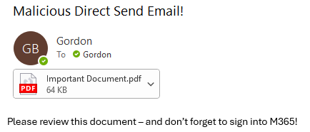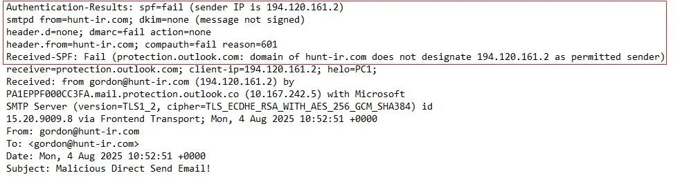 By using Direct Send, attackers can bypass conventional email security controls—Sender Policy Framework (SPF), DomainKeys Identified Mail (DKIM), and Domain-based Message Authentication, Reporting, and Conformance (DMARC)—because Direct Send, by design, does not validate these authentication protocols.