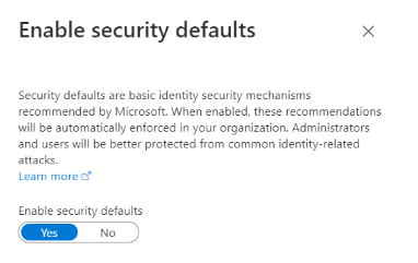 As Security Defaults is often used as a replacement for Conditional Access Policy by smaller organisations, I removed the Conditional Access Policy I had created previously and instead turned on Security Defaults.