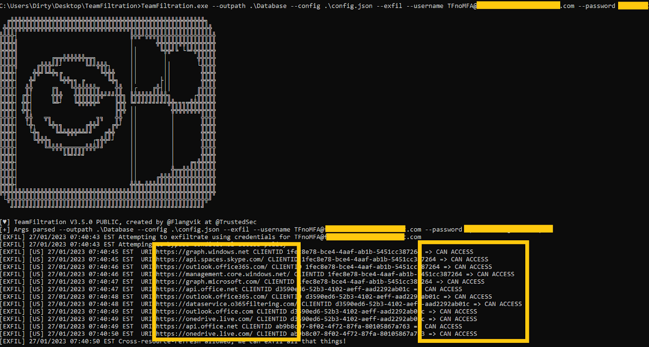 TeamFiltration is a Microsoft 365 exploitation and post-exploitation framework which was publicly released on in August 2022 after it was presented at DEF CON 30. TeamFiltration allows penetration testers (and adversaries) to identify valid username and password combinations through enumeration and password spraying, which can then be used for account access and data exfiltration.